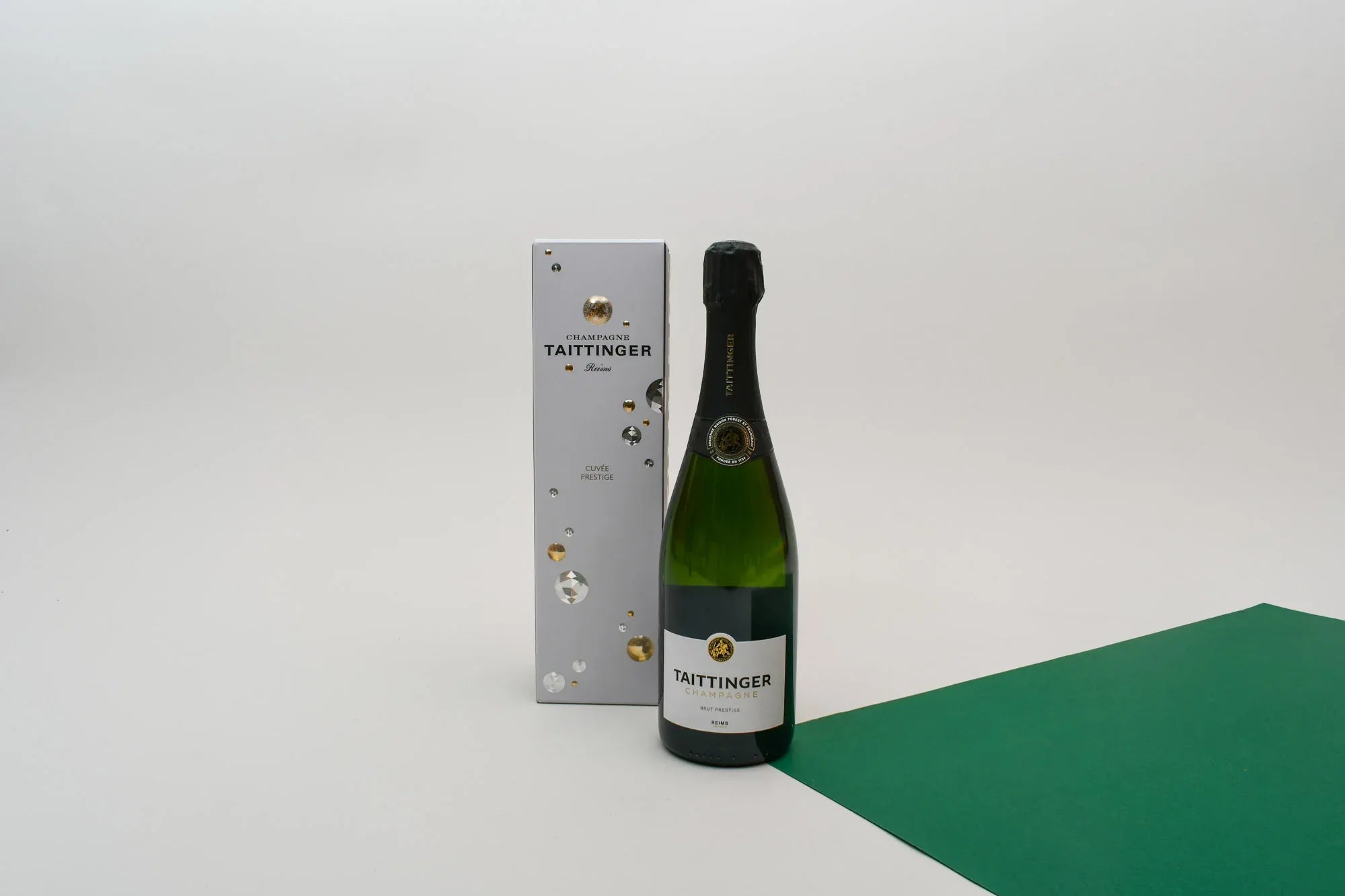 Le Champagne TAITTINGER Cuvée Prestige est la bouteille champenoise élégante : 60% pinot noir, 40% chardonnay, robe dorée, bulles fines, nez fruité floral brioché, production artisanale France Champagne.