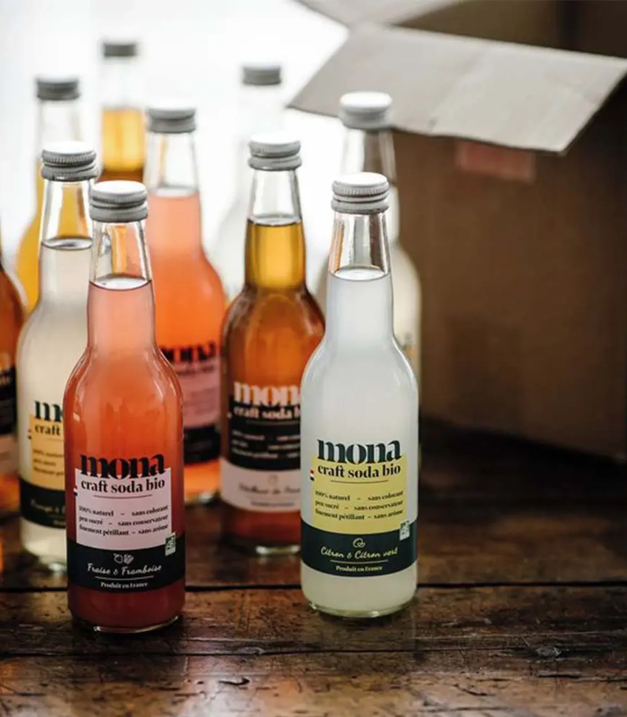 Craft soda biologique premium marque Mona, 100% naturel sans arômes synthétiques, conservateurs ou colorants artificiels nocifs. Fruits issus agriculture biologique française et européenne certifiée, brassée à Roissy-en-France garantissant qualité locale. Boisson authentique responsable pour entreprises éco-conscientes, événements corporate healthy et cadeaux d'affaires santé justifiée.