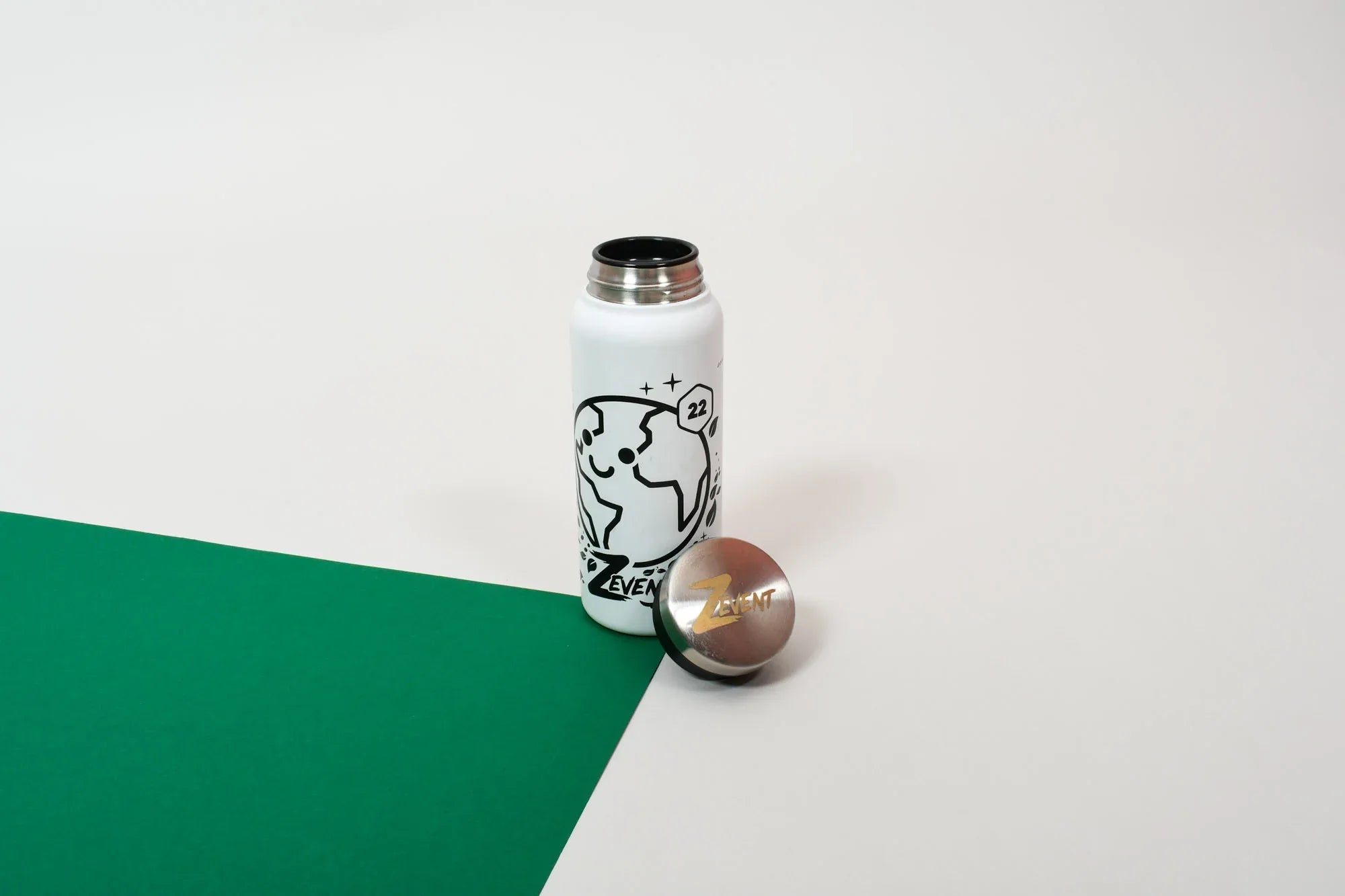 La Gourde isotherme en acier recyclé est une bouteille : 600ml capacité, double paroi acier inoxydable recyclé RCS, couvercle vissé sécurisé, large ouverture nettoyage facile.