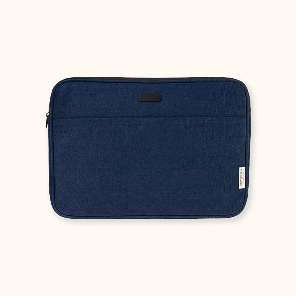 La housse d'ordinateur personnalisé en toile recyclée Joey 14" est l'étui protecteur : toile 80% coton recyclé GRS + 20% coton 330g/m², doublure GRS RPET, compartiment protégé rembourré, personnalisable, 14 pouces.