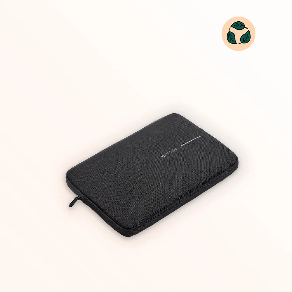 La pochette ordinateur 14" en RPET est la housse éco-conçue certifiée RCS pour les professionnels responsables : tissu RPET 1200D déperlant, doublure polyester rembourrée, fermeture magnétique, dimensions 24 x 2,5 x 34,5 cm.