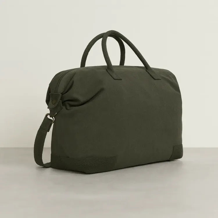 Ce sac week-end en toile de coton recyclé 500 g/m² est un accessoire de voyage solide, élégant et durable. Ses finitions soignées avec accessoires en laiton et son grand compartiment principal 40 L en font un compagnon idéal pour les escapades et les déplacements professionnels. Dimensions 20 x 64 x 40 cm. Personnalisable par broderie, transfert numérique ou sérigraphique pour un cadeau d'entreprise premium qui allie style et responsabilité, dès 25 pièces.