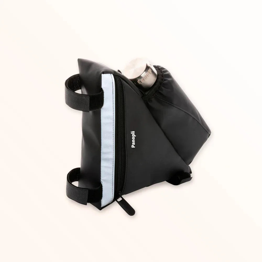 La sacoche réfléchissante est l'accessoire vélo sécurité : PU haute visibilité, fixation cadre rapide, porte-bouteille intégré, matériau réfléchissant, design épuré, marquage personnalisé, fabrication roumaine.