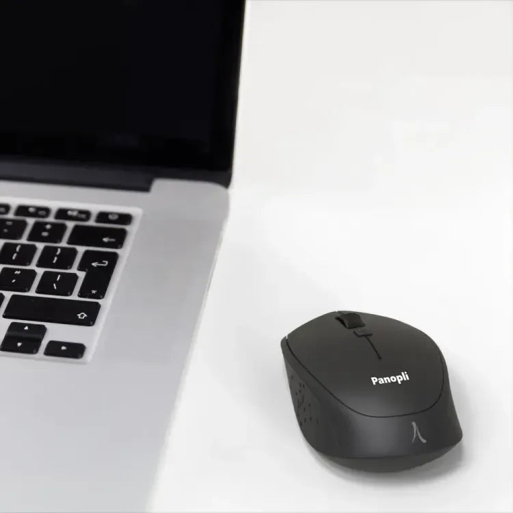 Cette souris sans fil en plastique recyclé est taillée pour le bureau : 3 niveaux de sensibilité (800, 1 200 et 1 600 dpi), double dongle USB, veille automatique à 15 secondes et veille profonde à 15 minutes pour une autonomie de 4 mois sur une seule pile AA. Compatible Windows, Mac et Linux, plug & play (61 x 101 x 38 mm, 60 g). Personnalisable par gravure laser ou tampographie 1-4 couleurs pour un cadeau tech utile au quotidien, dès 10 pièces.