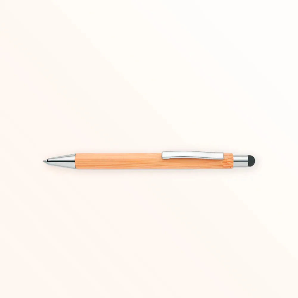 Stylo en bambou avec embout tactile personnalisé