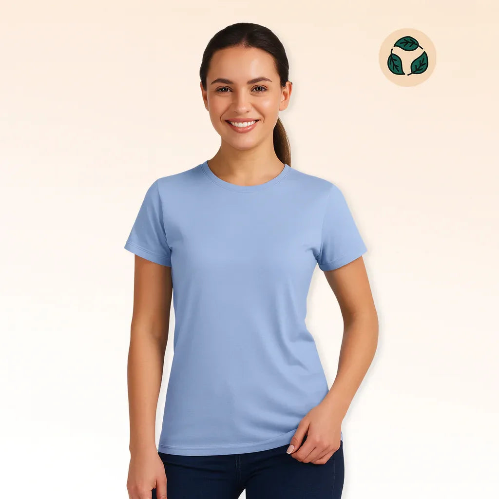 Le t-shirt femme en coton biologique est le basique éco-responsable certifié OCS à la coupe féminine moderne : jersey 100% coton biologique 175 g/m², col rond côtelé 1x1, coutures recouvertes, tailles XS à 4XL.