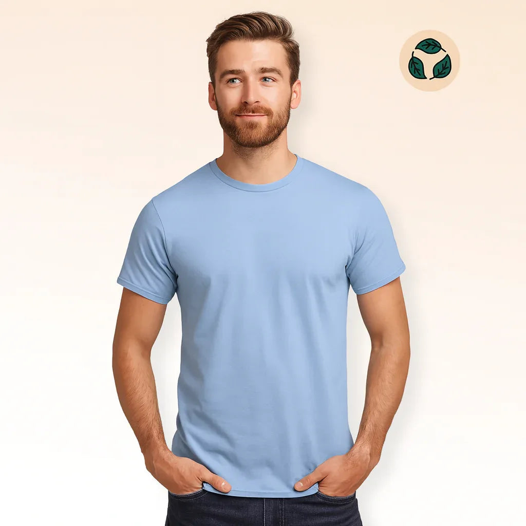Le t-shirt homme en coton biologique est le basique premium certifié OCS pour vos équipes engagées : jersey 100% coton biologique 175 g/m², col rond côtelé 1x1, coutures recouvertes, tailles XS à 6XL.