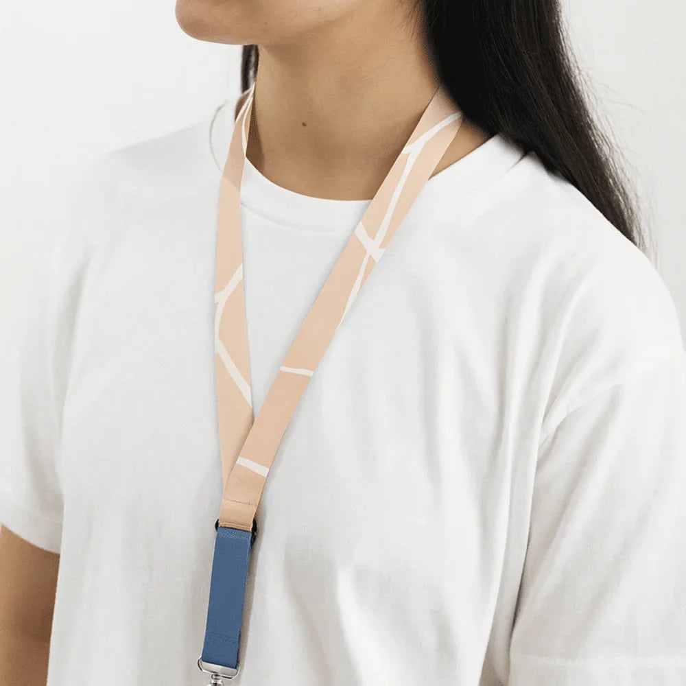 Le tour de cou en RPET détachable est le lanyard de sécurité 360° : RPET recyclé, mousqueton détachable + boucle de sécurité, cordelette téléphone intégrée, sublimation durable, fabrication hongroise.