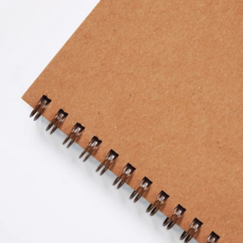 Un carnet au format A5, idéal pour vos prises de notes quotidiennes ou pour offrir à vos équipes. Fabriqué en France avec une couverture rigide en carton recyclé et une spirale en métal cuivré, il allie sobriété et durabilité.