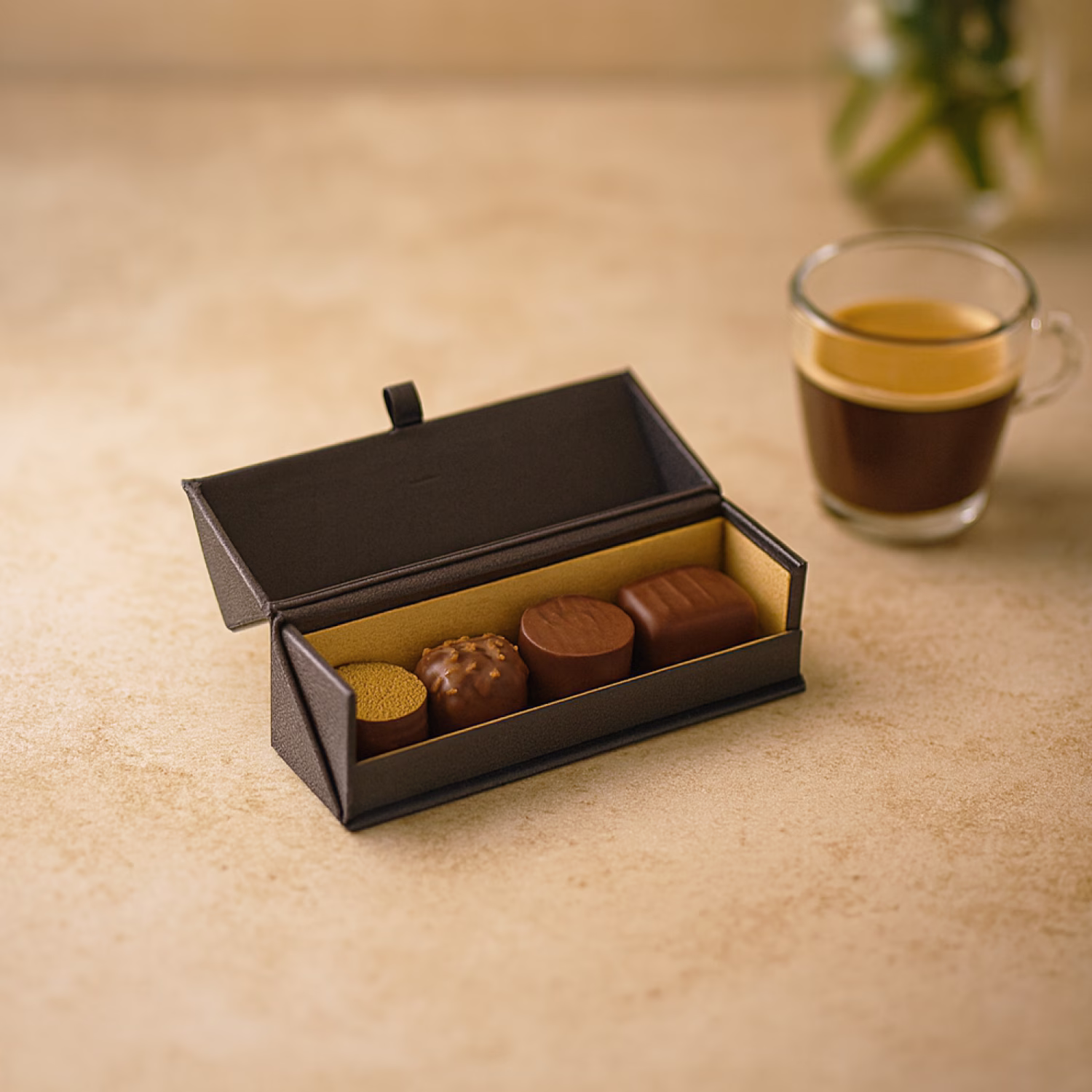 Coffret de 4 chocolats avec étui personnalisé – Made in France