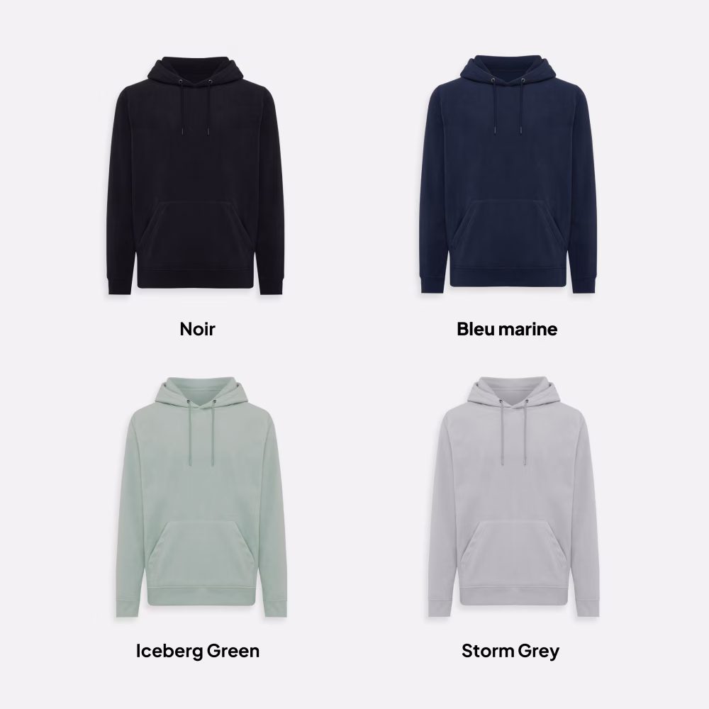 Sweat à capuche unisexe en micro-polaire douce et légère.